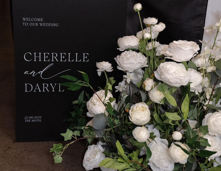 Welcome sign and floor florals